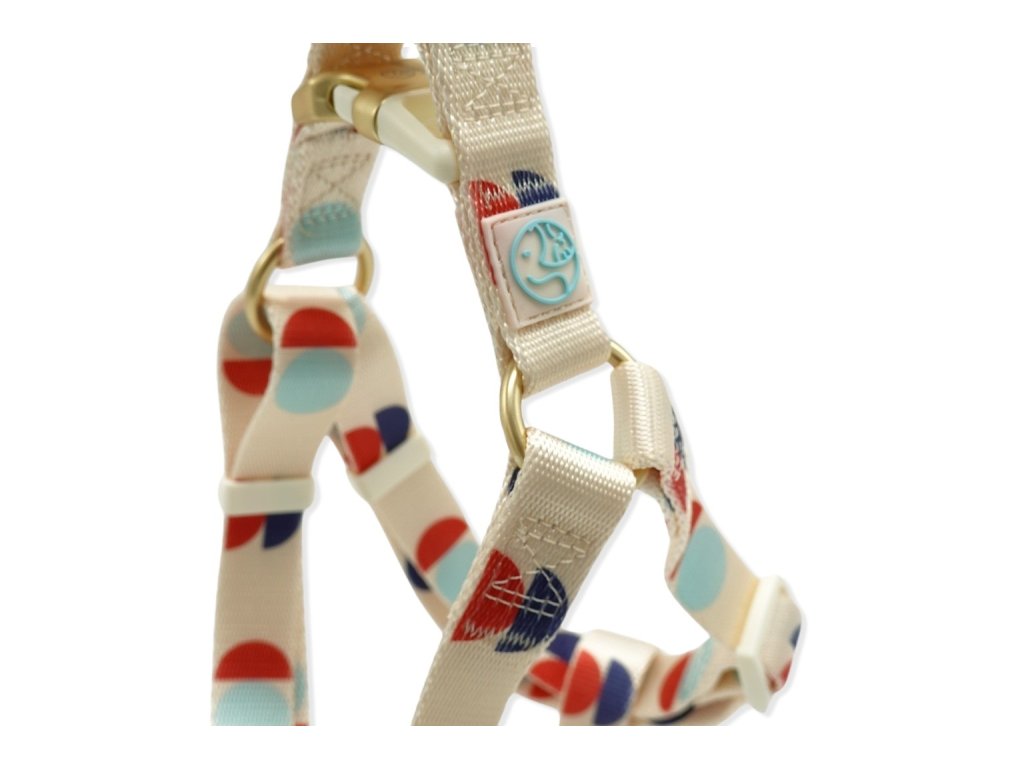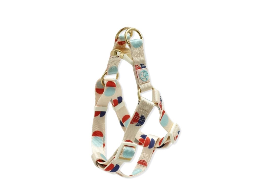 Pevný a odolný látkový postroj pro menší plemena se vzorem.