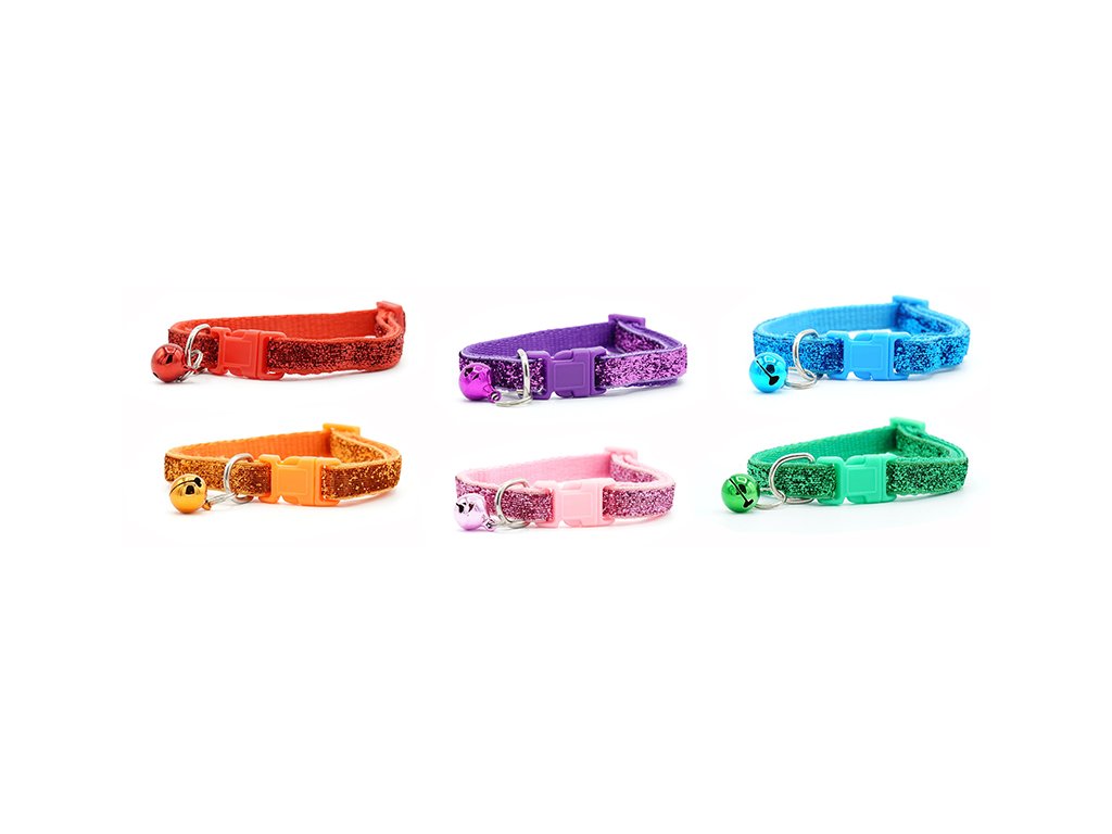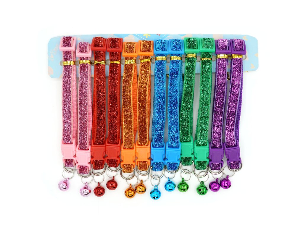 Vzhled: hladký popruh se třpytivým efektem, rolnička v barvě obojku
